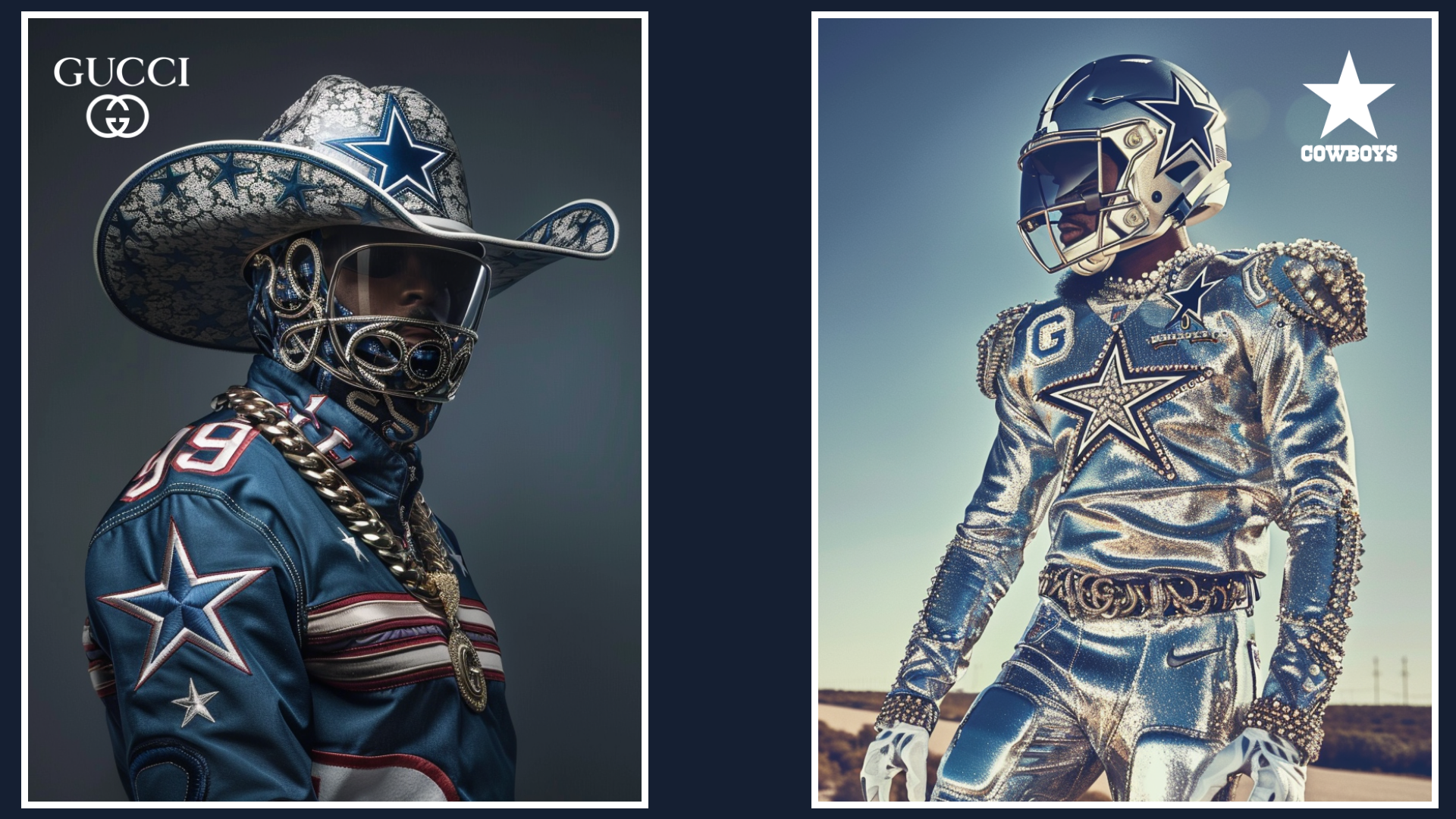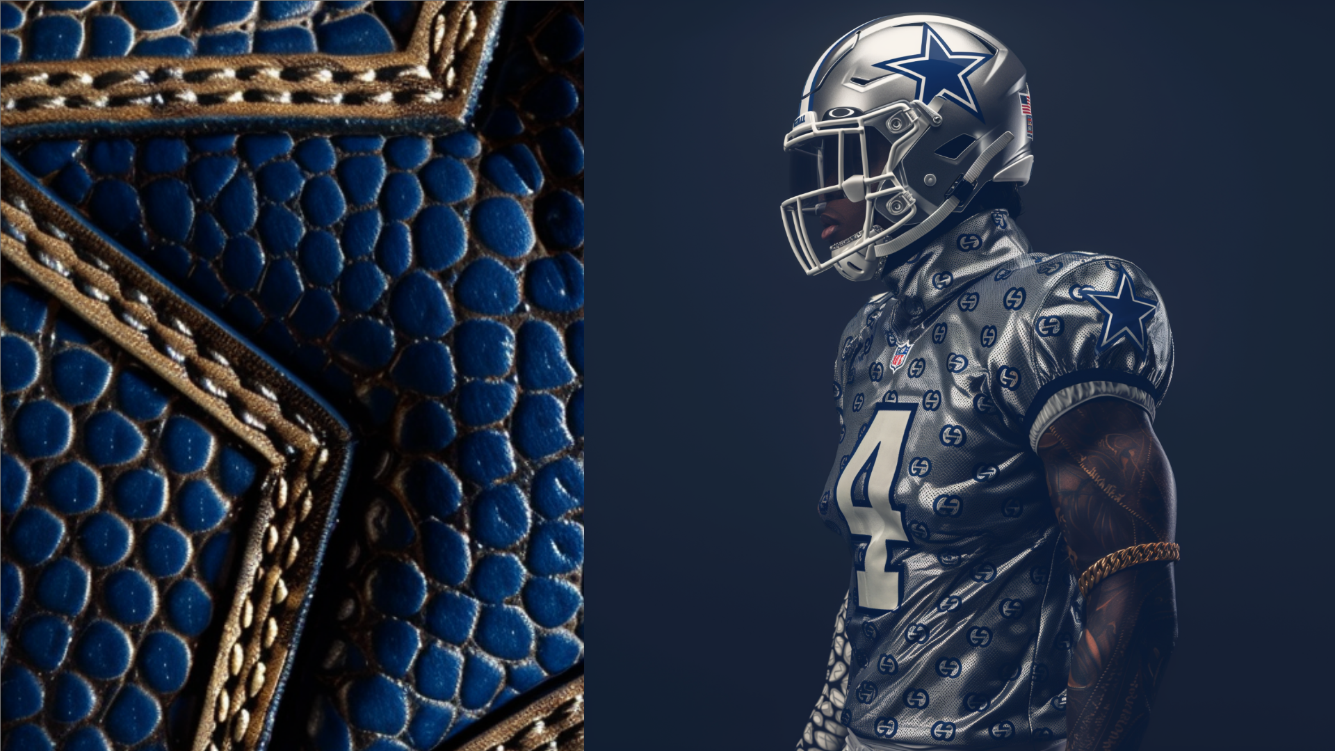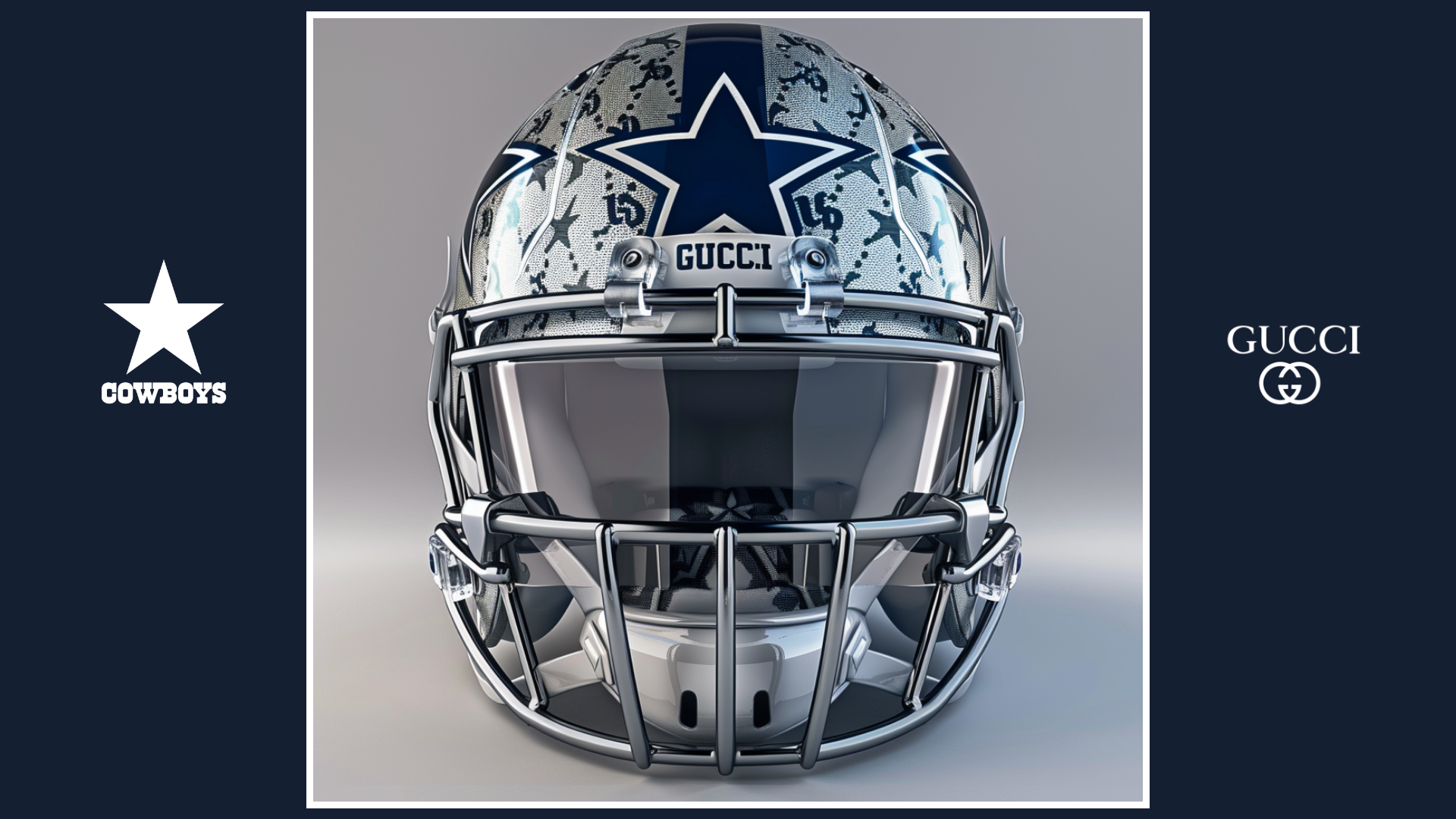Gucci X Dallas Cowboys mashup, AI-generated content, and copy. Showcasing my skills with AI.